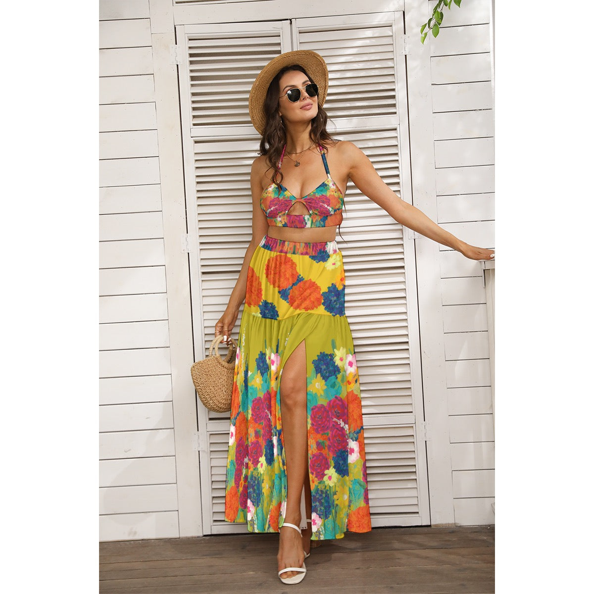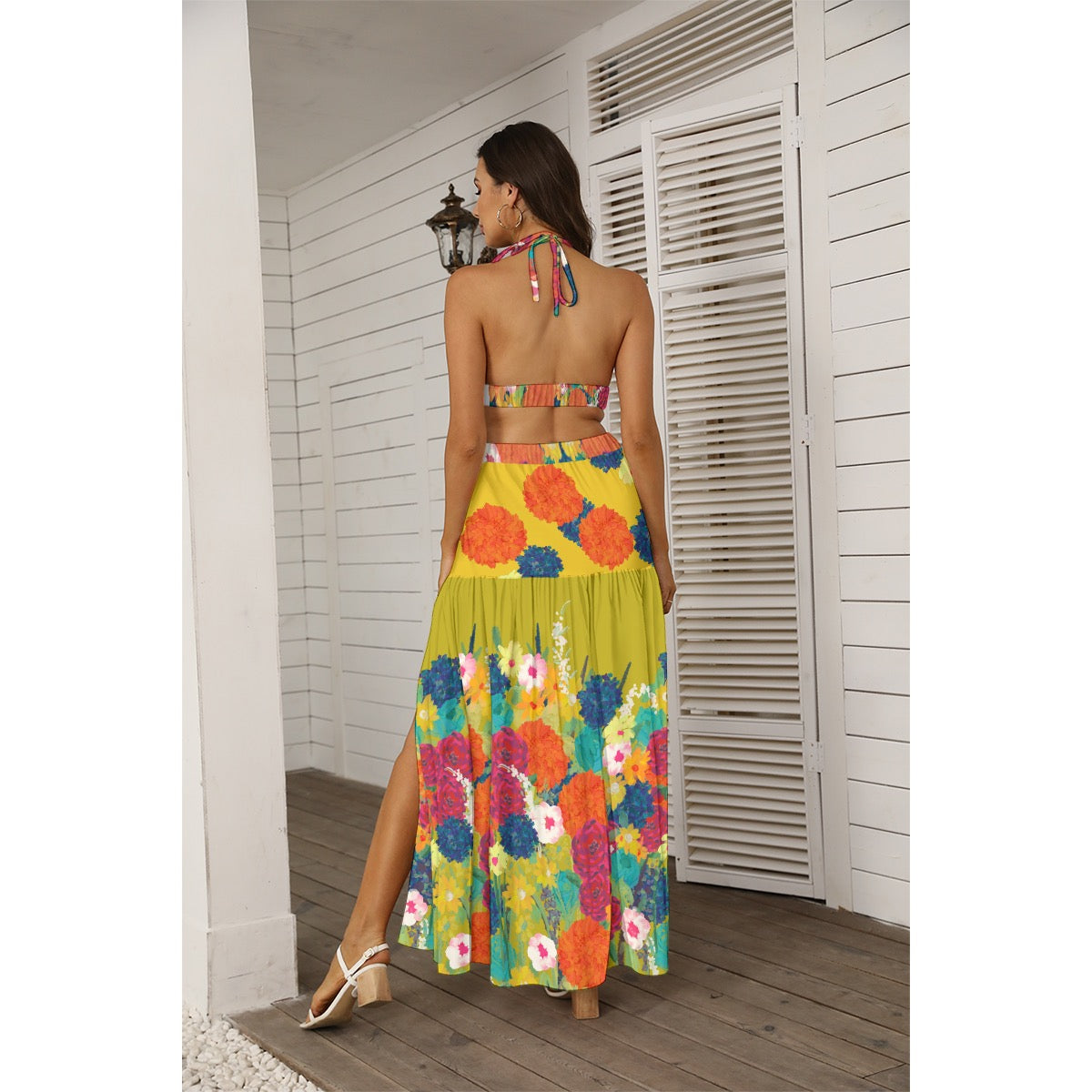 Sexy bikini dress suit, the design of neck coat can show the charming back; The skirt is designed with side slits, which can make your legs slender