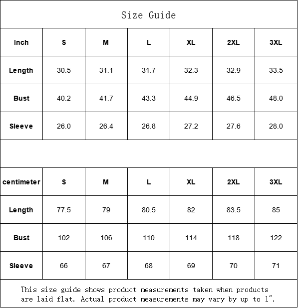 | centimeter | S | M | L | XL | 2XL | 3XL |