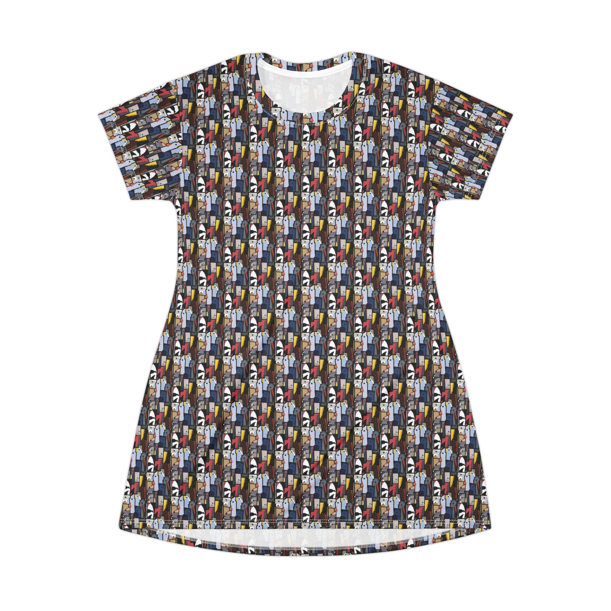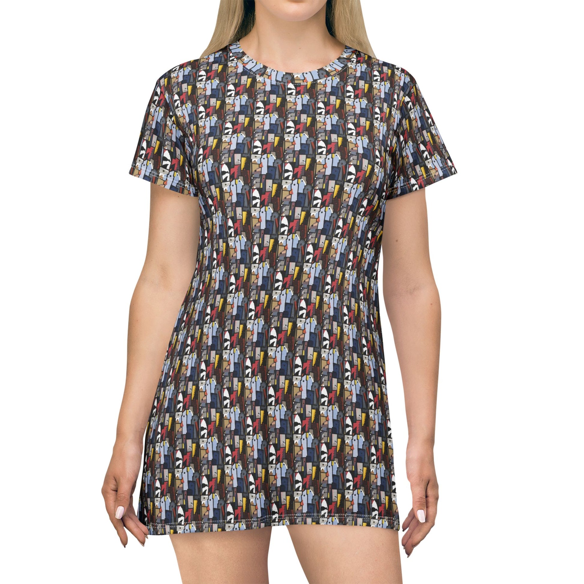 CAK bird dress All-Over Print T-Shirt Dress — Colorful Abstract Patterned Casual Dress