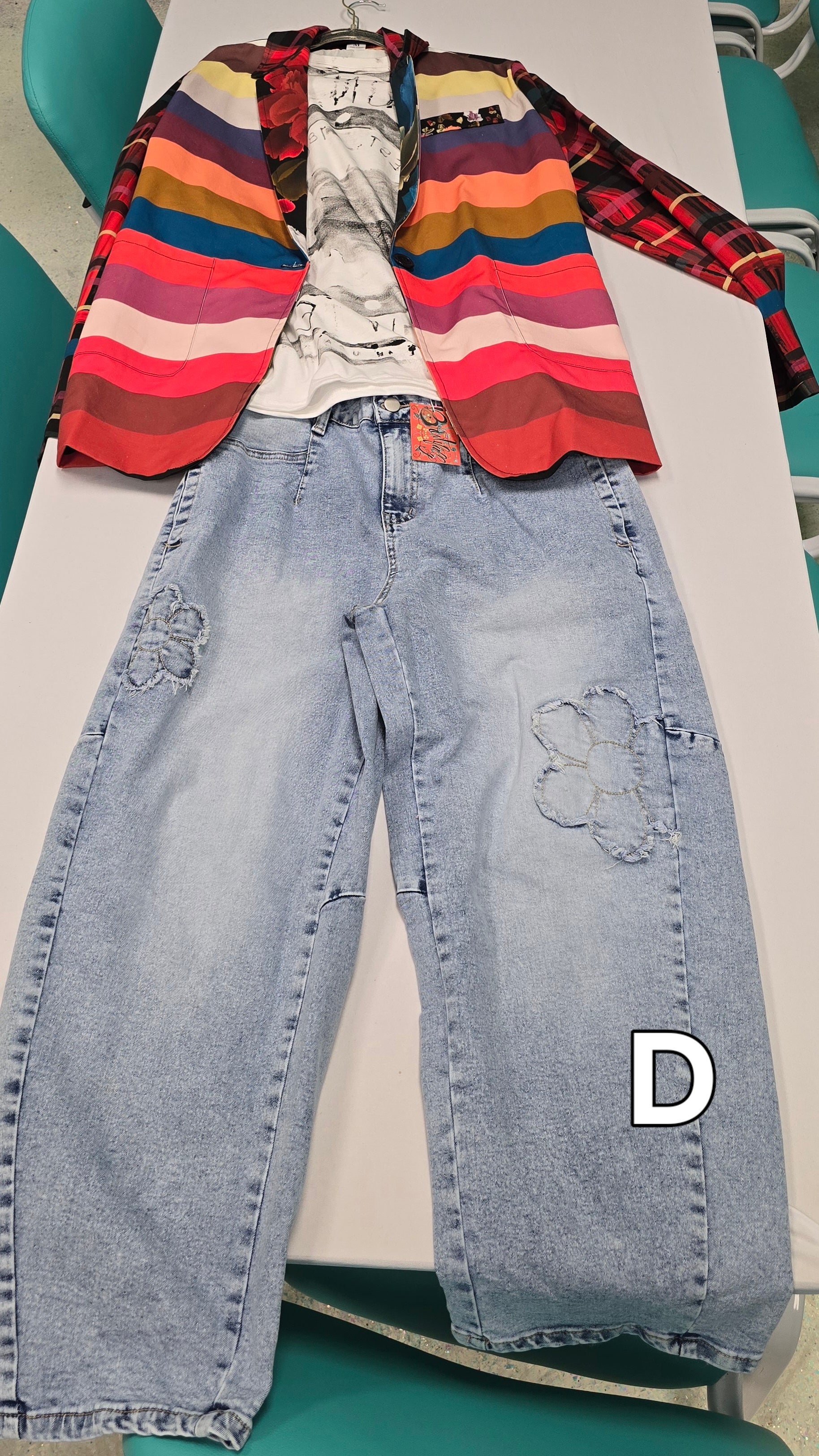 City Stripe and handpainted floral Leisure Blazer | 245GSM Cotton -multi on white base