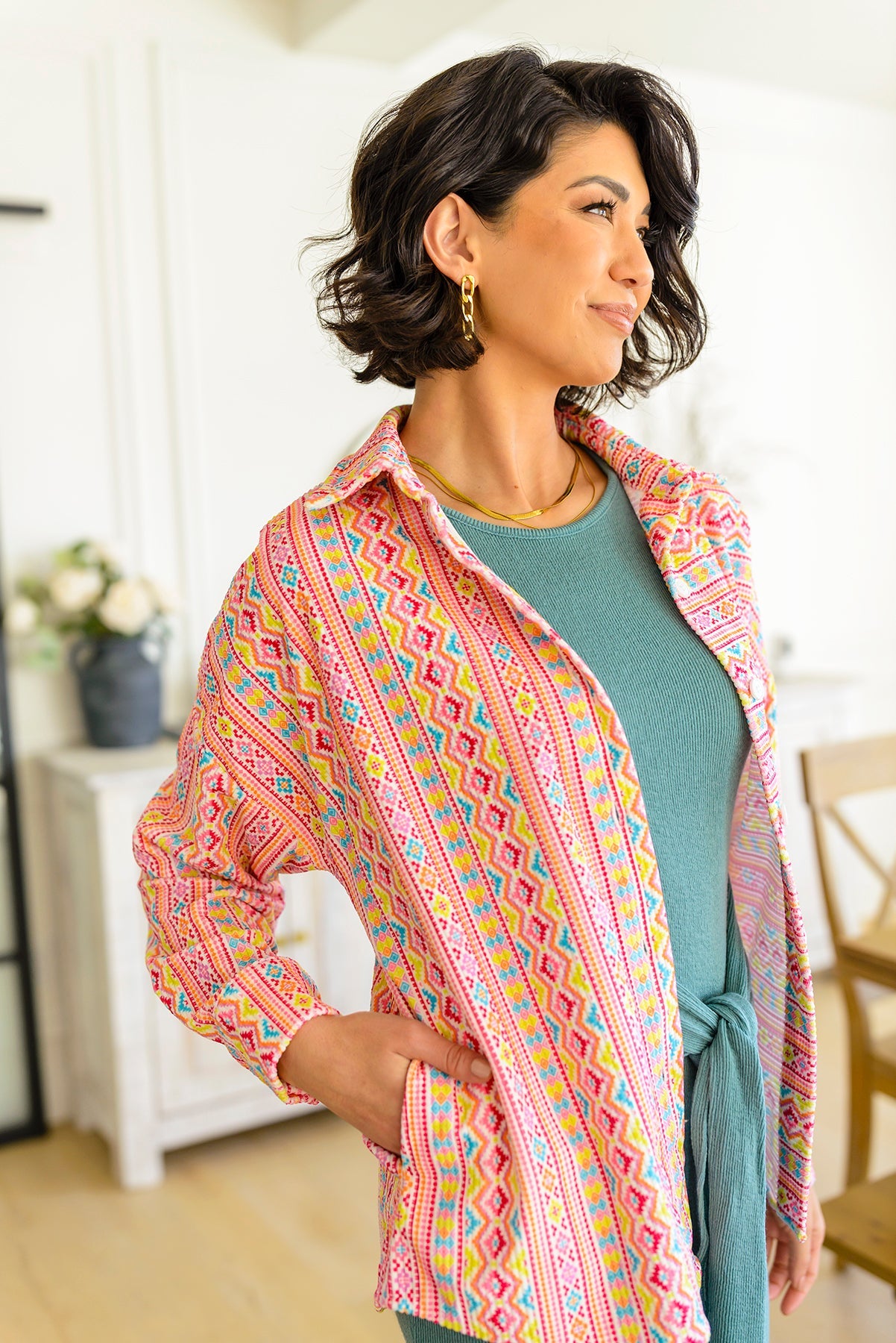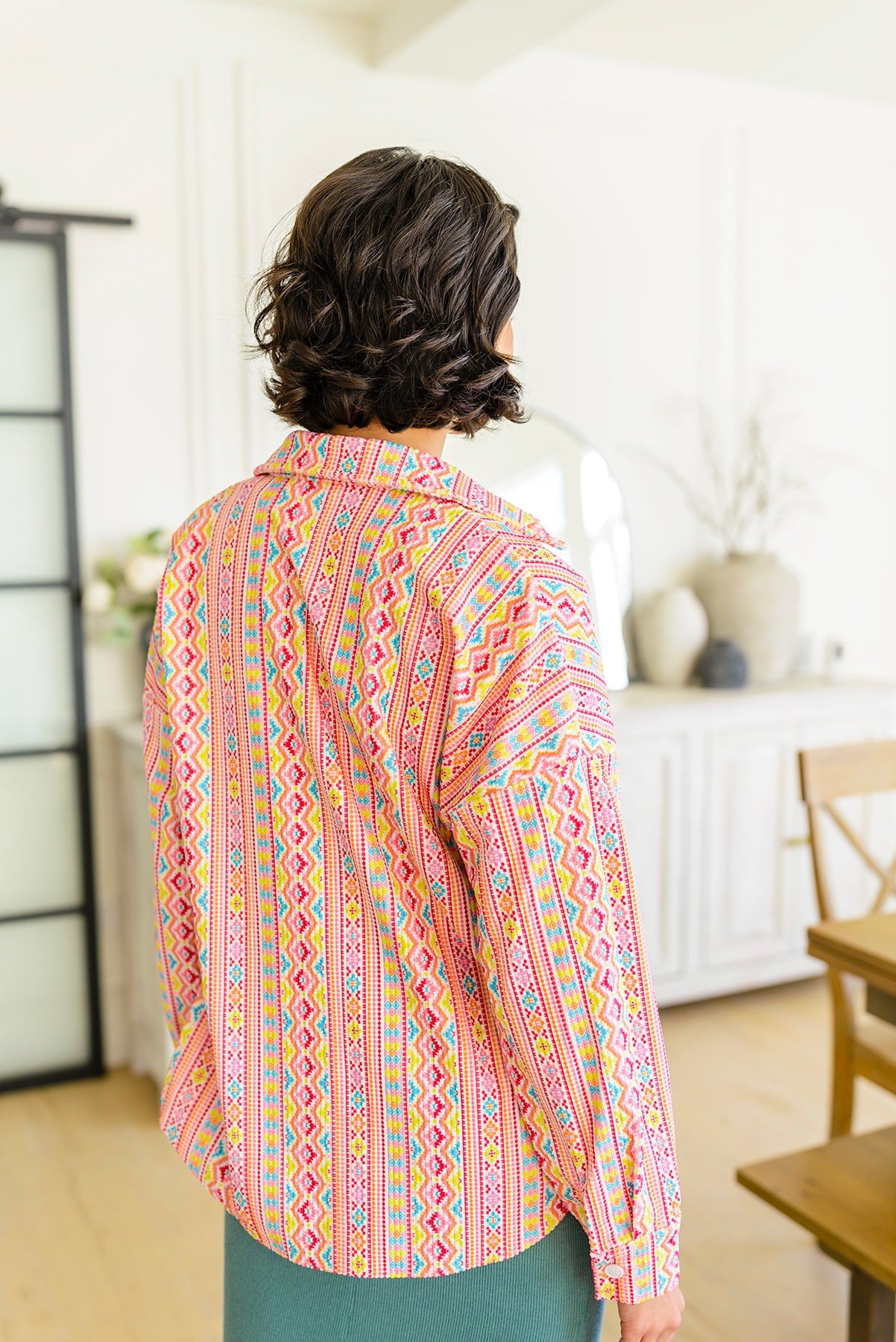 Put a geometric spin on your casual wardrobe with our Imagine When Corduroy Button Down shirt. This wearable work of art is made of stretchy corduroy fabric, so you can step out in comfort, and features a gorgeous striped pattern that'll make 'em gasp! With a button front and handy side pockets, you won't want to take it off! Let's see what you can imagine when you wear it!