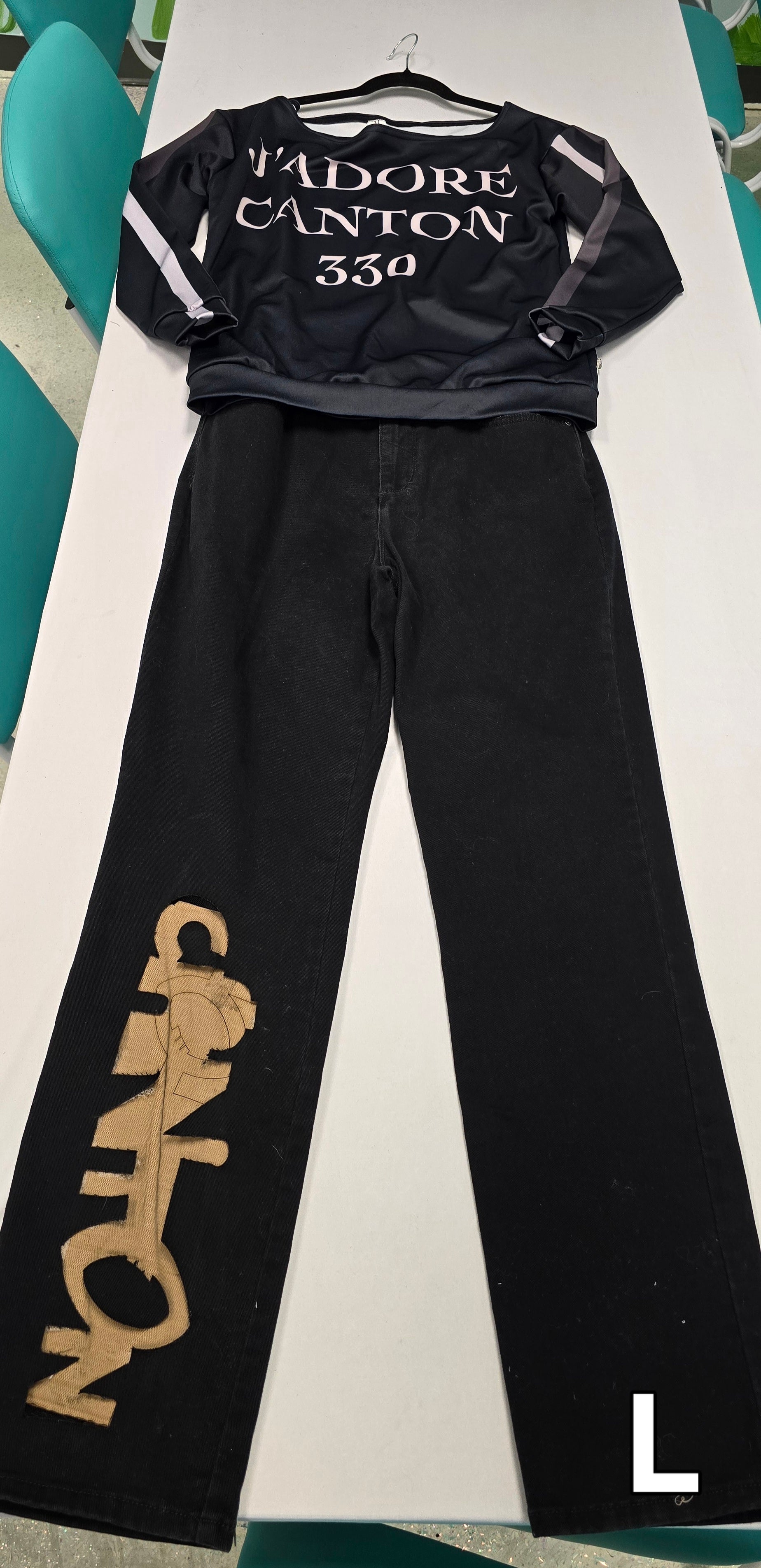 J'Adore Canton Women's Off-Shoulder Sweatshirt black on white base with sports stripes