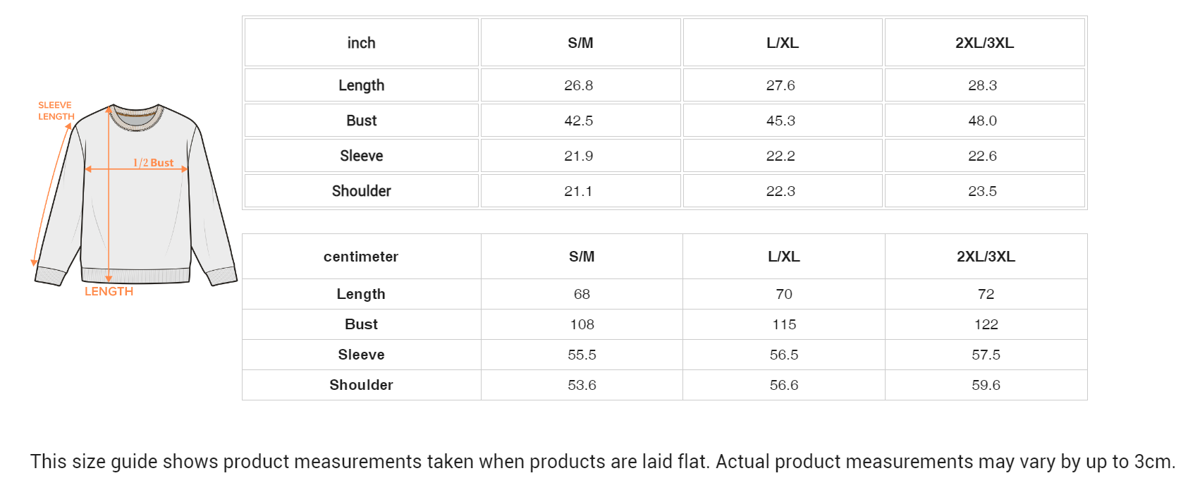 This size guide shows product measurements taken when products are laid flat. Actual product measurements may vary by up to 3cm.