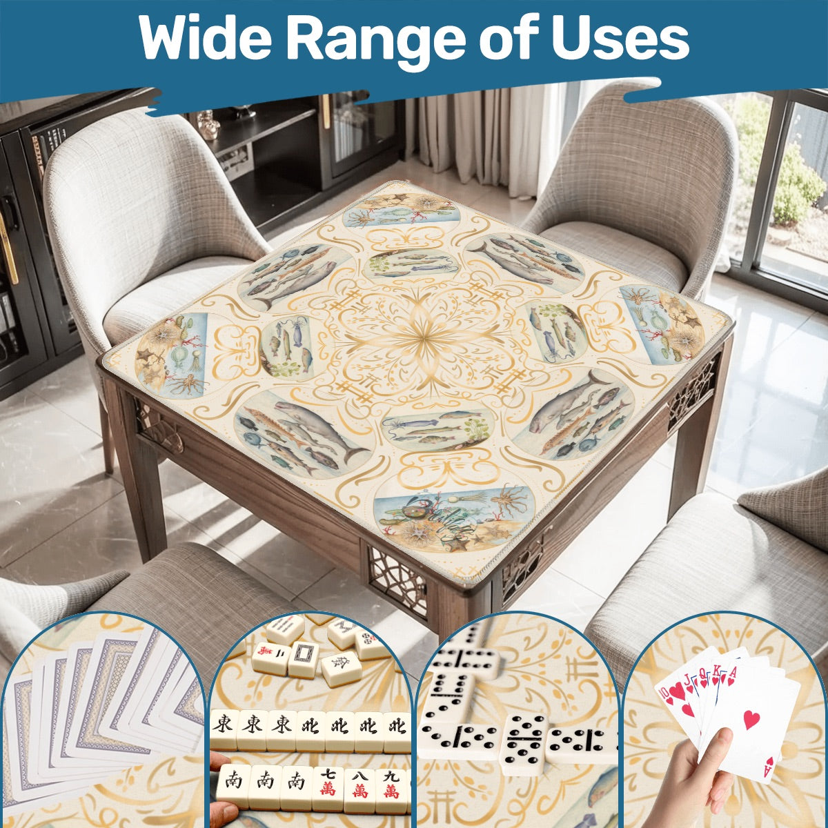Vintage aquatic-Mahjong Mat 31.5"x31.5" (Ship Rolled up)