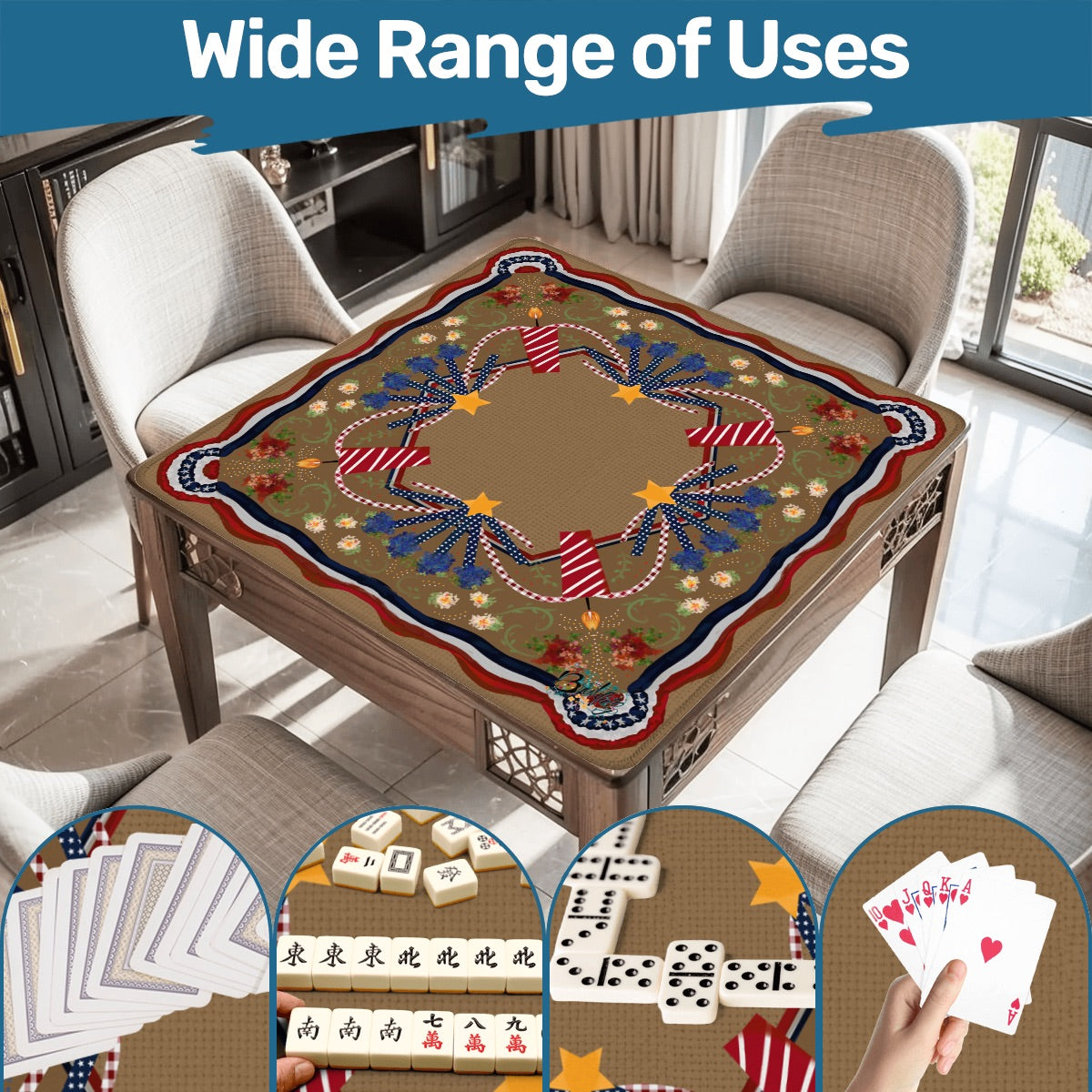 Retro Patriotic Square Mahjong Mat 31.5"x31.5" (Ship Rolled up)